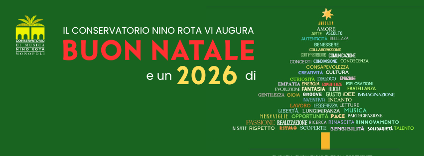 Si comunica che il Conservatorio resterà chiuso per le festività natalizie dal 24 dicembre al 6 gennaio pp.vv.